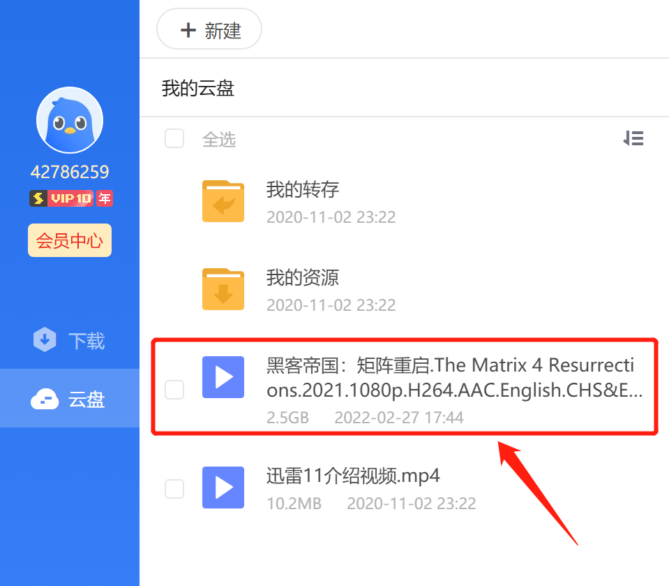 到这步,基本上就已经算成功一半了,然后,我们打开刺客今天提供的迅雷客户端,记得登录自己的账号,并进入云盘的界面: