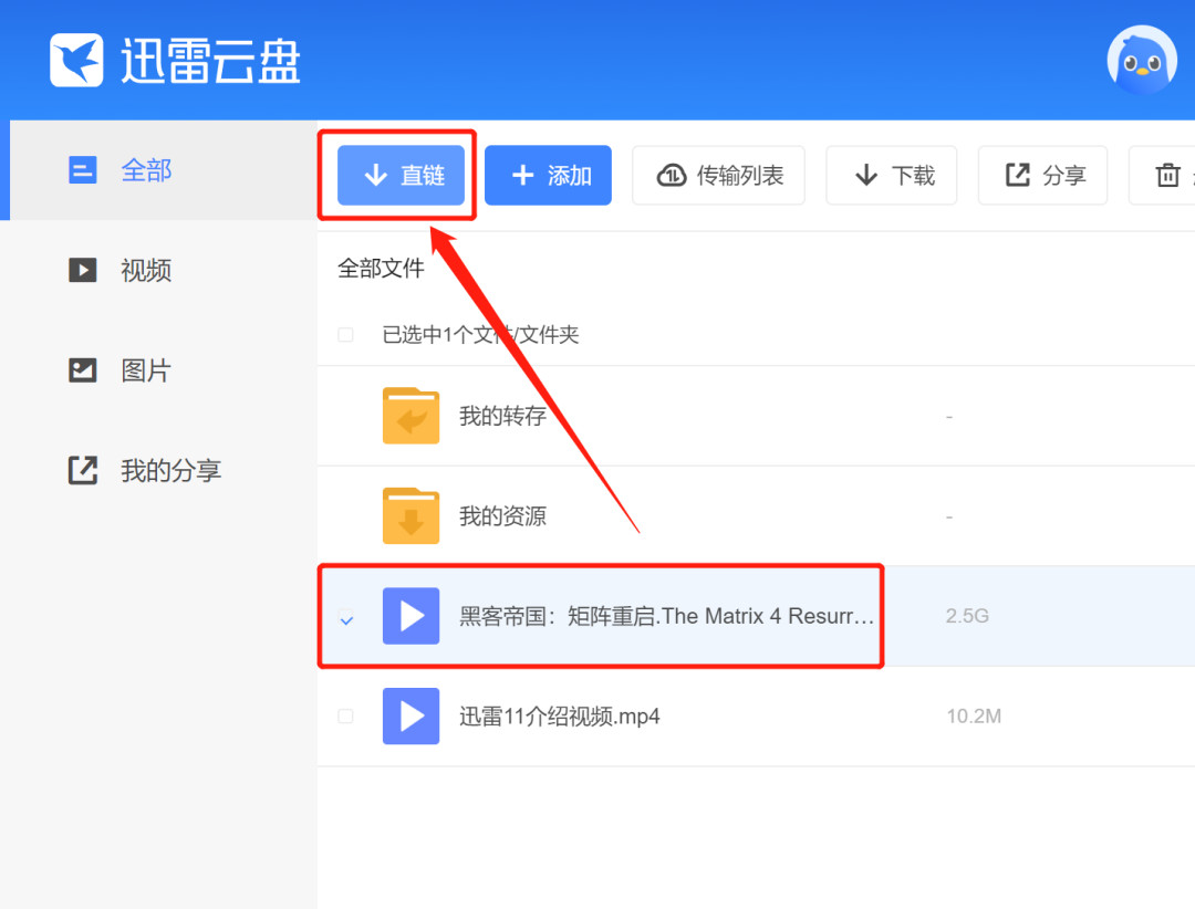 在完成以上步骤后,我们勾选想要下载的资源文件,并点击左上方的直链: