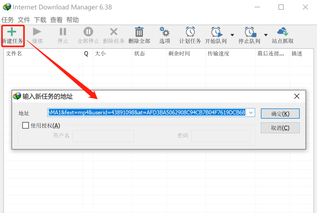 这个时候,我们复制需要的链接,在 idm里点击左上角的新建任务,并将链接粘贴进去: