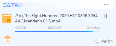 至于,大家感兴趣的下载速度,刺客这里以下载高画质的八佰为例:
