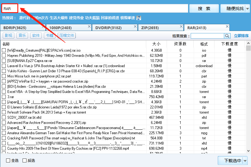 是不是关键词玩的好,资源不会少啊?懂得朋友都懂啊!软件还有一个有意思的地方,就是如果你不知道搜什么的话,就点点这里:
