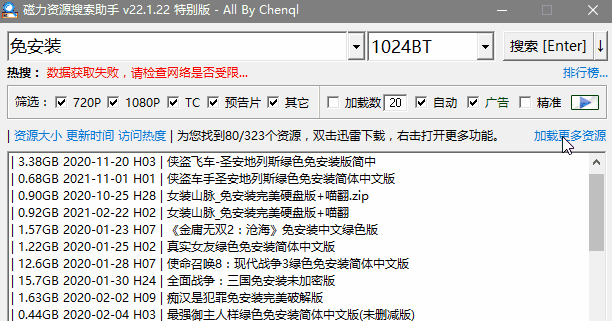 当然了,今天的软件,对于中文关键词的支持做的非常不错,能获取到大量的相关资源: