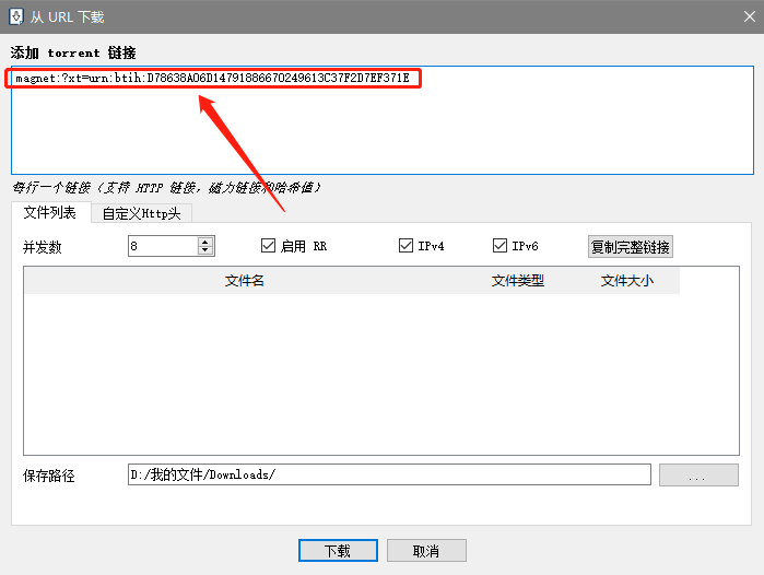 接下来,我们就实际测试一下好了,我们随便找个磁力链接,直接怼到新建任务里: