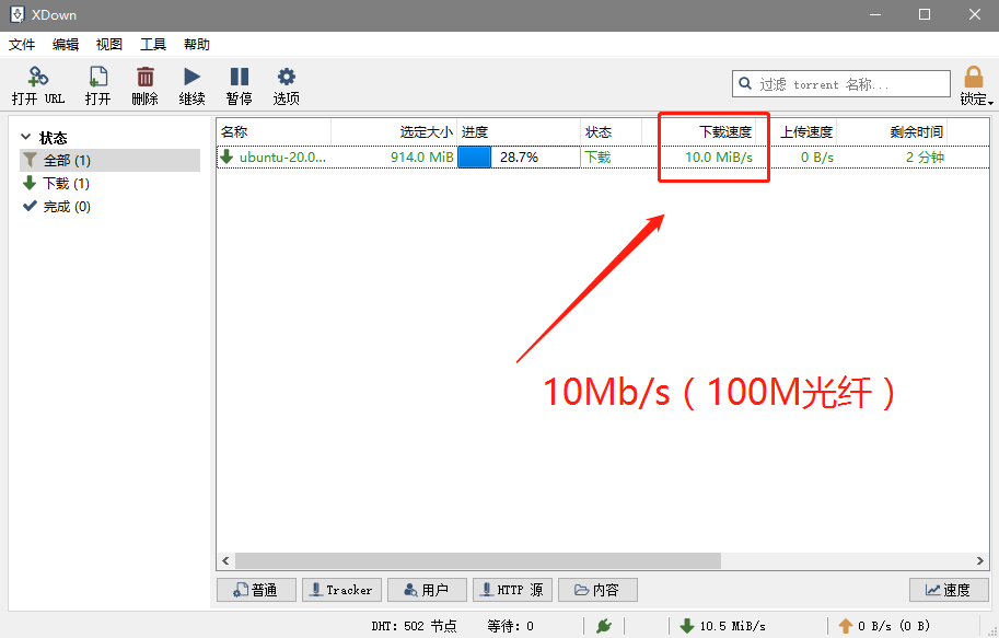 至于速度,它还真没怕过谁,百兆光纤满速跑到10Mb/s,还是很令人满意的: