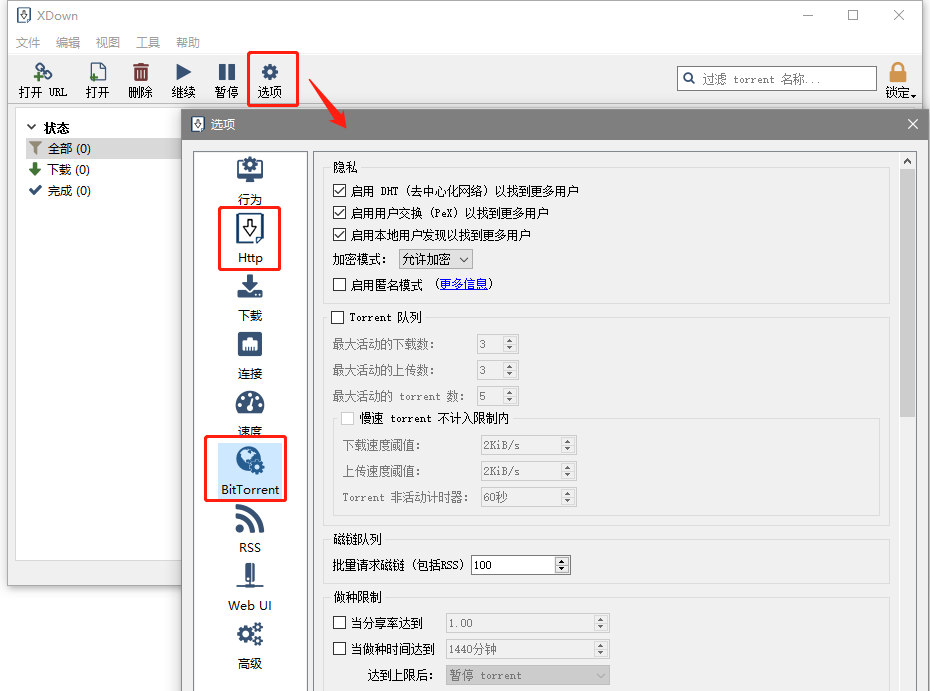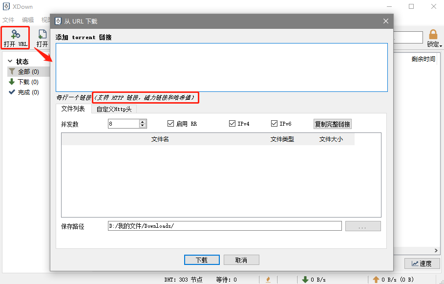 打开左上方的“+”号,里面也能看到对支持链接的提示:HTTP、磁力链接及哈希值,估计大家“懂得都懂”,也就不用刺客科普了: