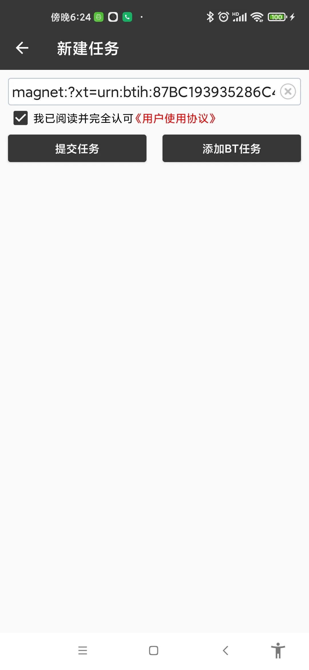 然后,打开刺客之前分享的磁力种子下载神器,便会自动获取到链接,进行下载: