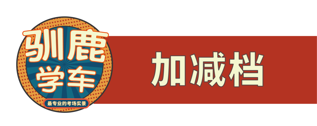 加减档语音提示后,档位速度相匹配,根据所处档位加一次档位,再减一次档位即可,全程项目区域外需要上一次四档,四档35码以上保持5秒钟以上,减速挂三档正常行驶即可。(具体考场路线与操作可观看考场视频)