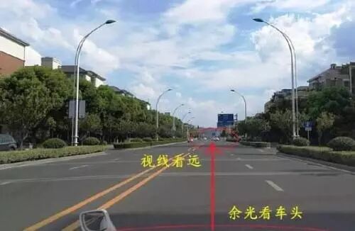 开始直线行驶时眼睛要向远处看,大致100m左右的距离就可以,这样便于车身发生偏移时及时调整。放松心态,目视远方,看的远才能走的直。