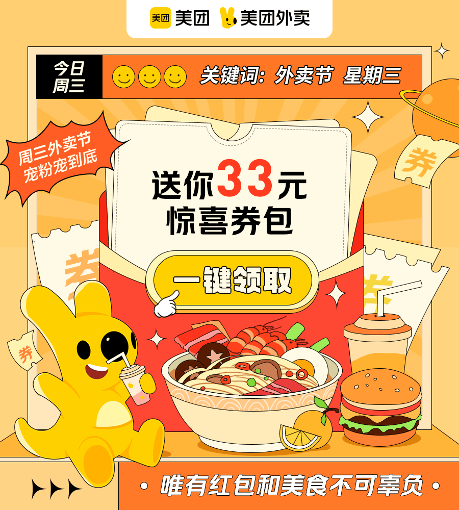 还有各种外卖相关的福利,包括外卖红包、外卖券、外卖神券、外卖节、美团外卖天天神券、神券节等等。