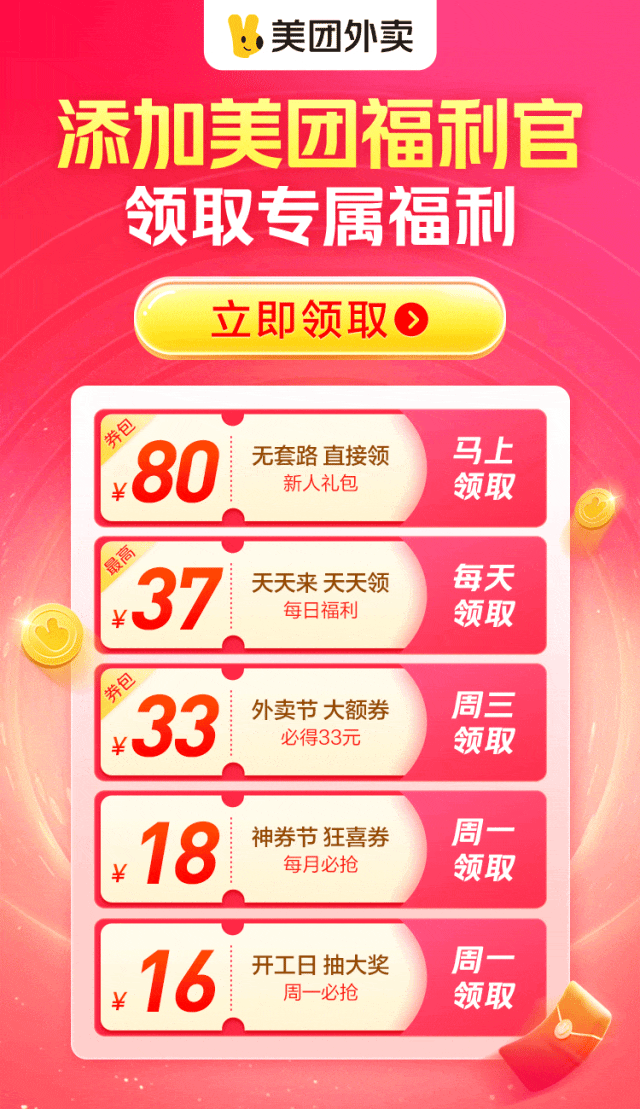 【添加外卖福利官】新客立领80元,天天可以领券包