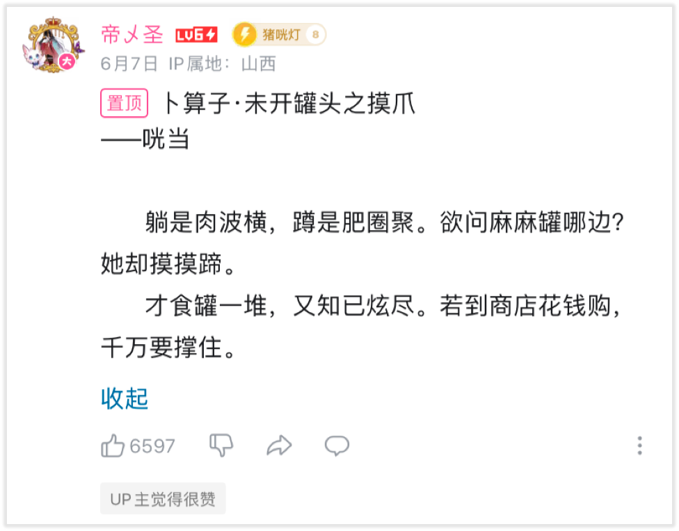 在一位网友的带动下,大家甚至会根据咣当每天的状态和心情,在评论区给它写诗。