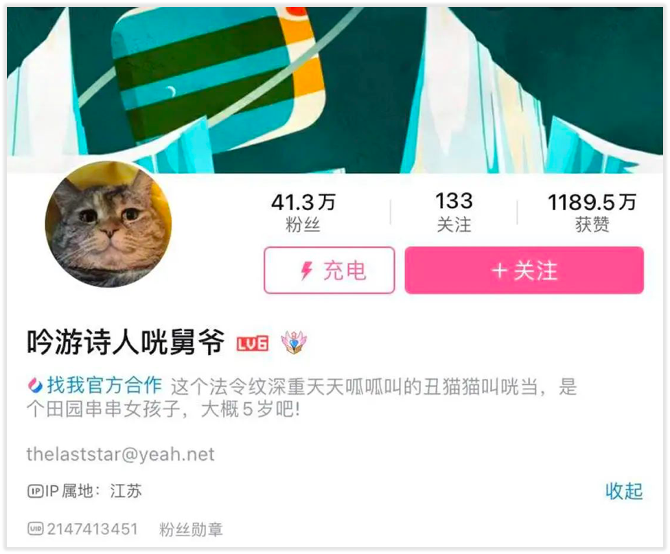 UP主@游吟诗人咣舅爷 在B站简介写道,咣当是一只“法令纹深重天天呱呱叫”、又话痨又嘴馋的五岁小猫。