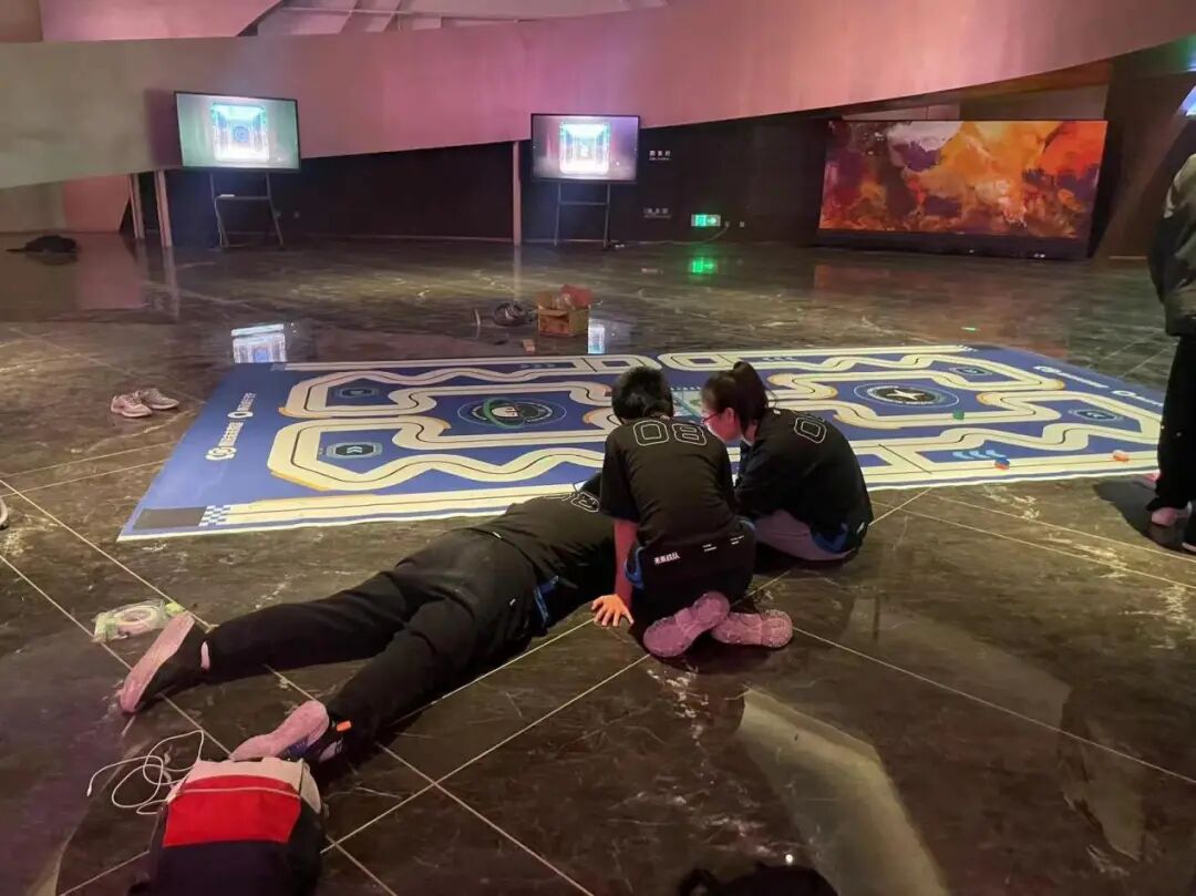在得知学校有未来教室后,小袁同学第一时间就加入了社团。在现场他趴在地上专注研究的模样,给所有工作人员都留下了深刻的印象。