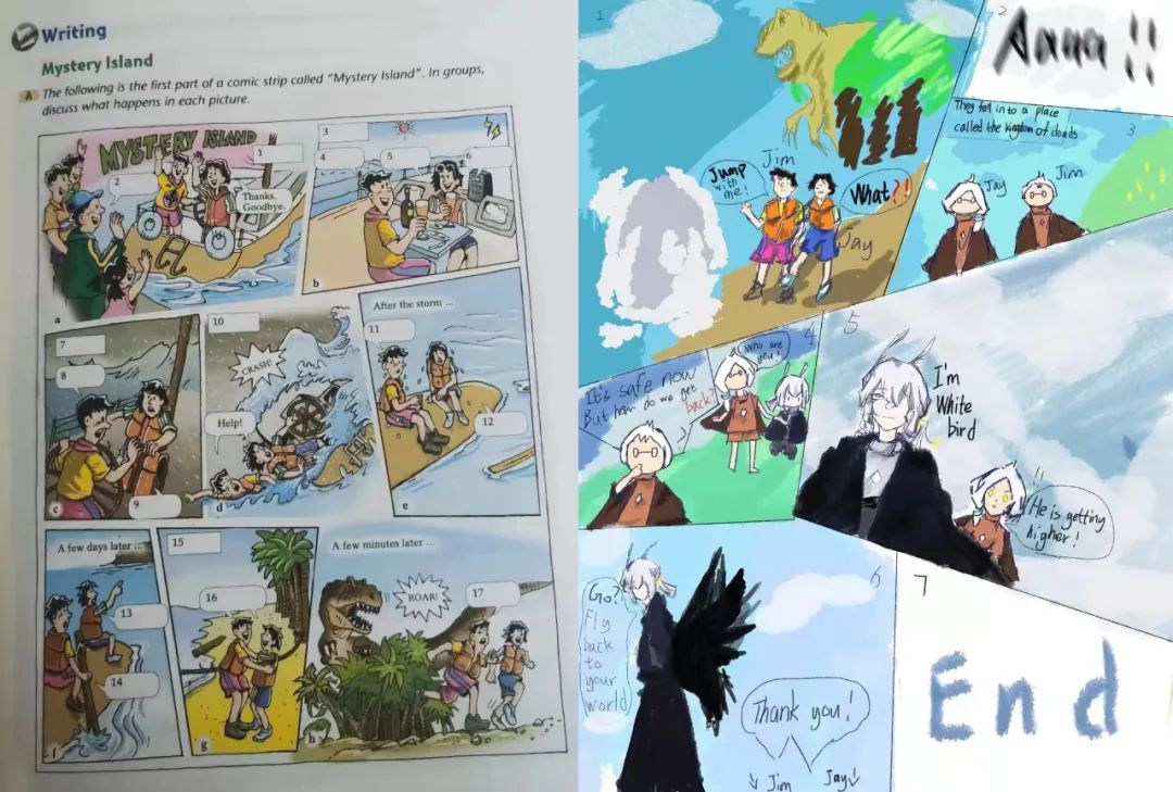 @云裳 女儿的英语作业原图VS自己画的续写