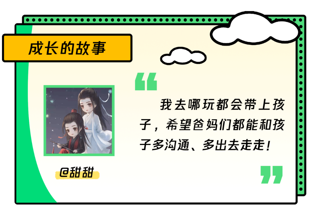 最后,希望爸妈都能和孩子多沟通,多一起出去走走!