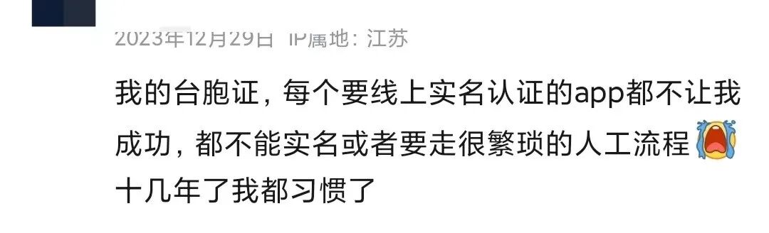 还有人表示自己也有同样的“痛点”,用台胞证进行实名认证总是失败。