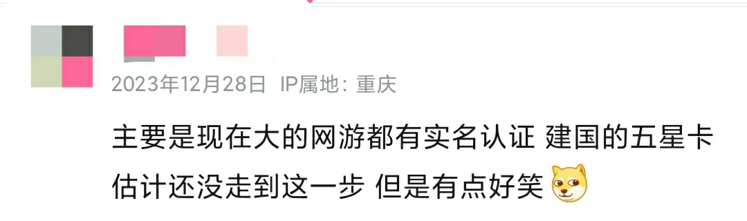 前段时间,还有一名UP主@司徒建国Stu,反馈新版五星卡用于游戏实名认证失败。