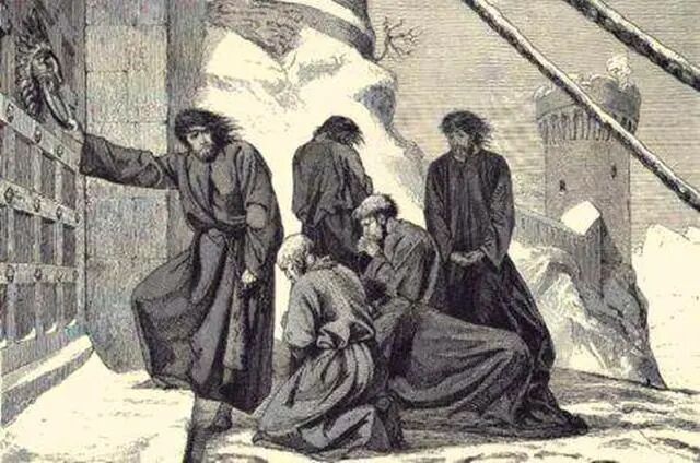 神圣罗马帝国皇帝亨利四世劝说地区主教们废黜教皇,而教皇格列高利七世则开除了皇帝的教籍。没想到开除教籍的威力这么大,亨利四世众叛亲离,只好冒着风雪严寒到卡诺莎城堡向格列高利七世忏悔罪过。亨利四世跪了三天三夜,终于换来格列高利七世的原谅。这就是卡诺莎之辱,这时的教权完全吊打政权。