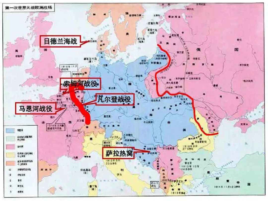 不久,德意志帝国、奥匈帝国和刚统一不久的意大利组成同盟关系,对付法国、英国和沙皇俄国组成的协约国。萨拉热窝事件成为导火索,第一次世界大战爆发。同盟国两线作战,意大利人见风使舵,德意志人深受其害。奥匈帝国解体;德意志帝国投降,签署了侮辱性极强的《凡尔赛条约》。