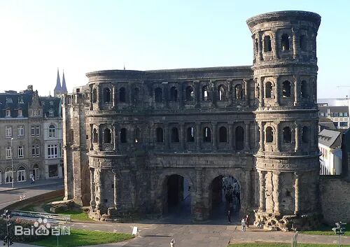 罗马帝国势力扩张到莱茵河与多瑙河,与日耳曼人划江而治。日耳曼人曾经在条顿堡森林消灭了3个来到莱茵河西岸的罗马军团。罗马人和罗马教会在科隆、特里尔等地建立城市,修建了罗马式建筑群。这就是日耳曼地区出现的最早的城市。