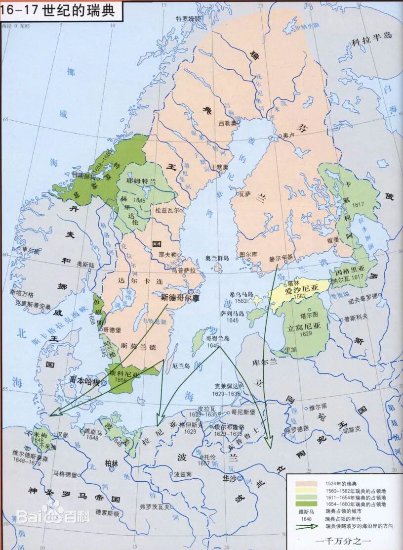 依靠军事战术的革新和尚武精神,瑞典迅速扩张领土,芬兰、波兰北部、利沃尼亚都纳入瑞典领土。这是瑞典版图最大的时刻,甚至一度占领了诺夫哥德罗。不过,后来瑞典被沙皇俄国击败,先后交出利沃尼亚和芬兰给沙皇俄国。