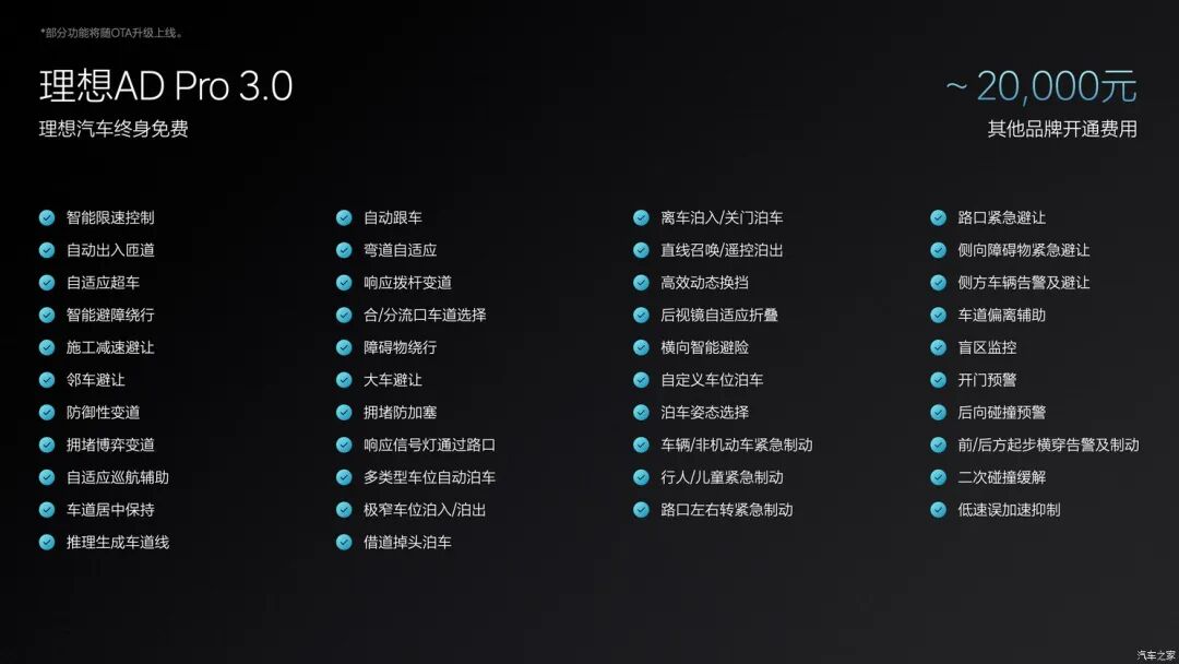 AD Pro 将随着理想L6交付,同步升级到AD Pro 3.0,实现三大高阶智驾能力。1、BEV大模型的高速NOA,实现千公里级别的安全接管水平。2、城市LCC,实现红绿灯识别和路口起停。3、复杂车位的智能泊车,在超过300类的复杂车位都可以帮你自动泊入。