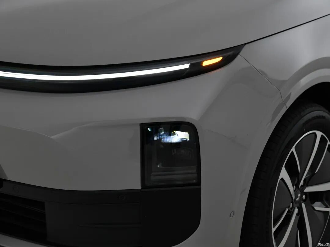 外观方面,理想L6延续家族风格设计,虽然看上去与L7很像,但是细节上仍然有很大不同。首先,这次L6使用了一体式的悬浮设计星环日行灯,这是理想首款采用一体式设计的车型,可以看到星环灯延续至两侧的黄色小灯后部。