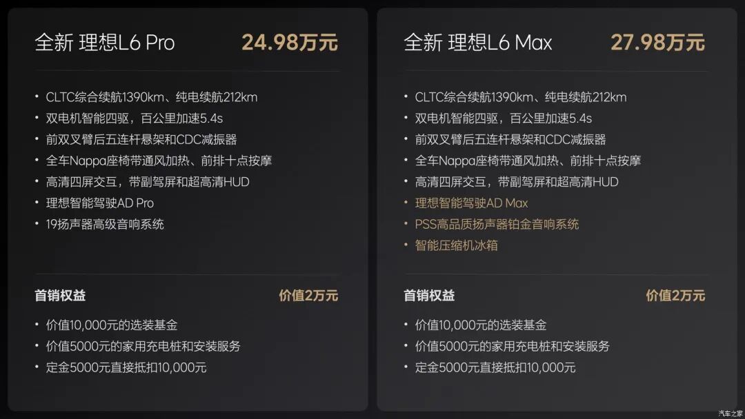 很显然,理想L6是瞄着问界M7打的,两款车型定价近似,相对来说问界M7的智驾版起售价在28.98万元以上,而理想两款车型都可以实现智驾,门槛更低。两款产品各有千秋,大家还需要实际上车对比,根据自己喜好做选择。