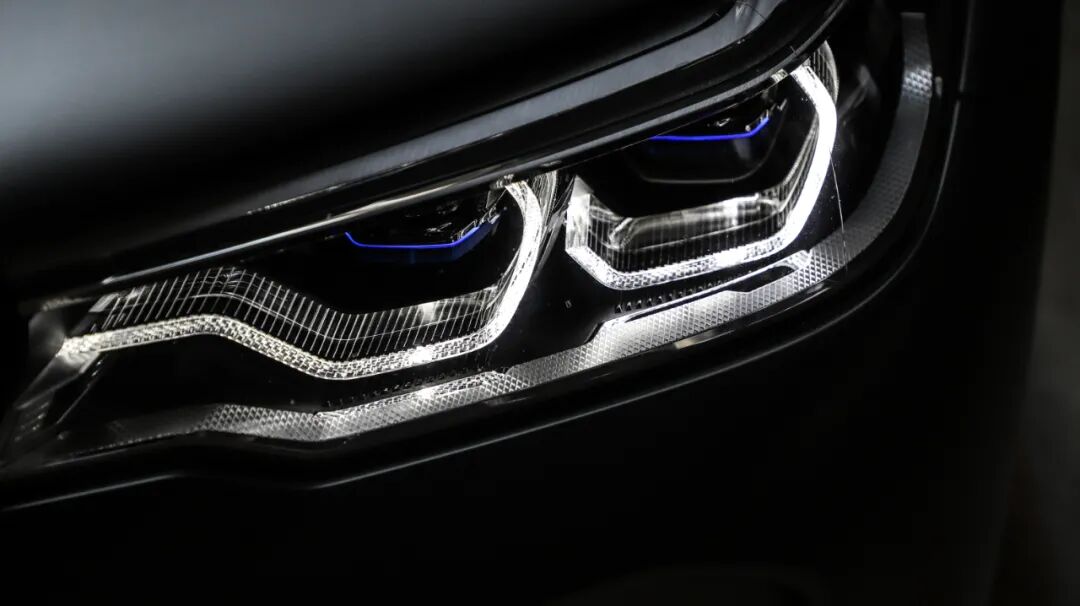 灯腔内的一抹蓝便是激光大灯的身份,严谨的说,是以激光为光源的远光照明辅助灯,由于强大的照射距离和中心亮度,它的启动条件很苛刻,绝大部分时间内,还是由LED担任和主持照明的一系列工作。