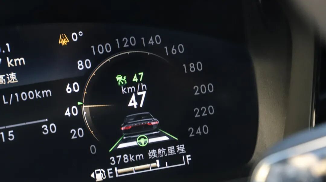 在主/被动安全配置上,这台车还配备了ACC自适应巡航、车道保持、并线辅助和主动刹车功能。其中自适应巡航按钮位于方向盘上,衍生的功能在使用时会亮起,其他时候则会熄灭,形成一块亮黑色饰条,很精致。
