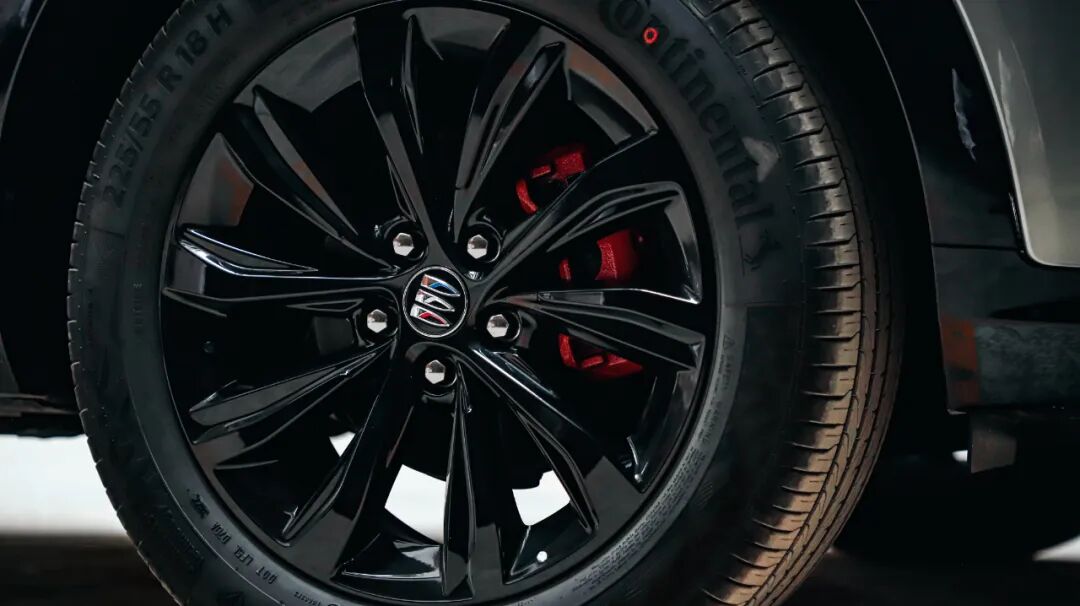 黑色18英寸轮圈,并采用红色涂装的制动卡钳。轮胎为马牌的UltraContact
