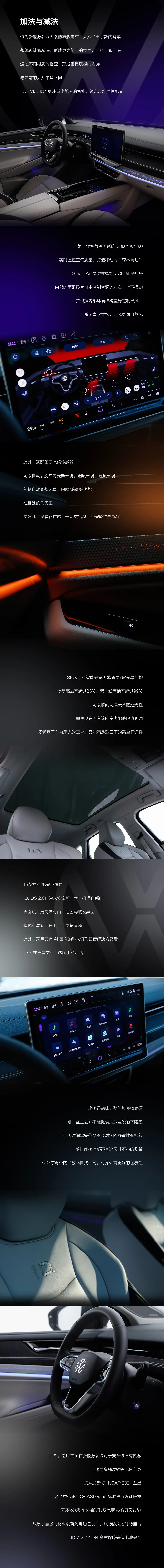 中央的2K显示屏尺寸达到15英寸,分辨率为2240*1260,它所搭载的ID. OS 2.0相比于此前ID.车型的系统进一步升级。导航模块采用全新布局,而且能结合新能源车显示更多信息,如充电地图、里程范围等,同时也与车载语音、HUD等融合,此外导航也升级到了车道级。其他的升级还包括更加强大的语音识别2.0、AI智能场景、与QQ音乐的深度合作等。