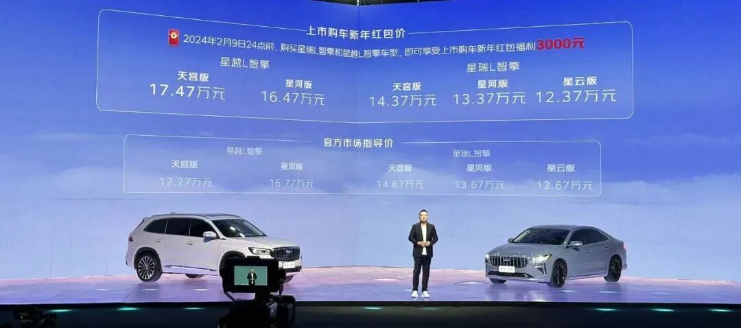 价格方面,星瑞L智擎共推出3款车型,售价区间12.67-14.67万元;星越L智擎推出2款车型,售价区间16.77-17.77万元。其中,2024年2月9日24点前购车用户,可享受3000元购车优惠;两款车天宫选装包为2999元;购买星越L智擎可享受NOA智能领航辅助系统2年免费使用权。