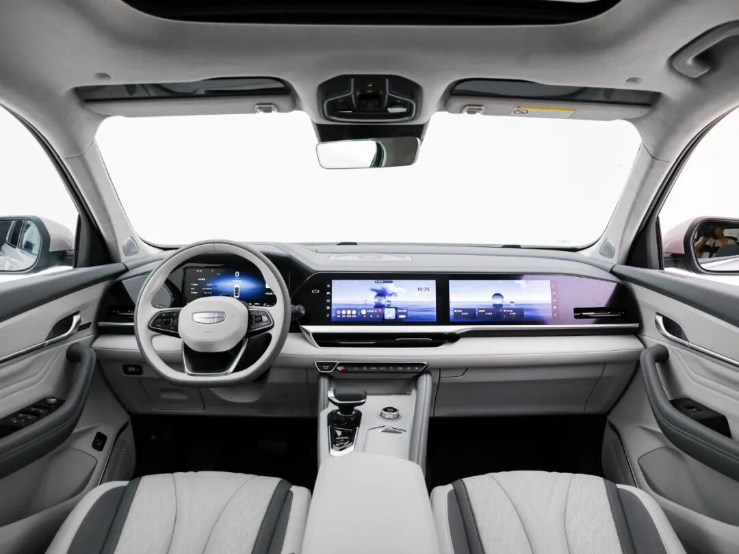 进入车内,新车将会延续现款星越L的设计,全新内饰配色以东方既白为灵感(天宫版标配),采用白色+灰色的拼色风格,结合大面积的皮革、银色饰条点缀与72色氛围灯,整车豪华氛围更加突出。