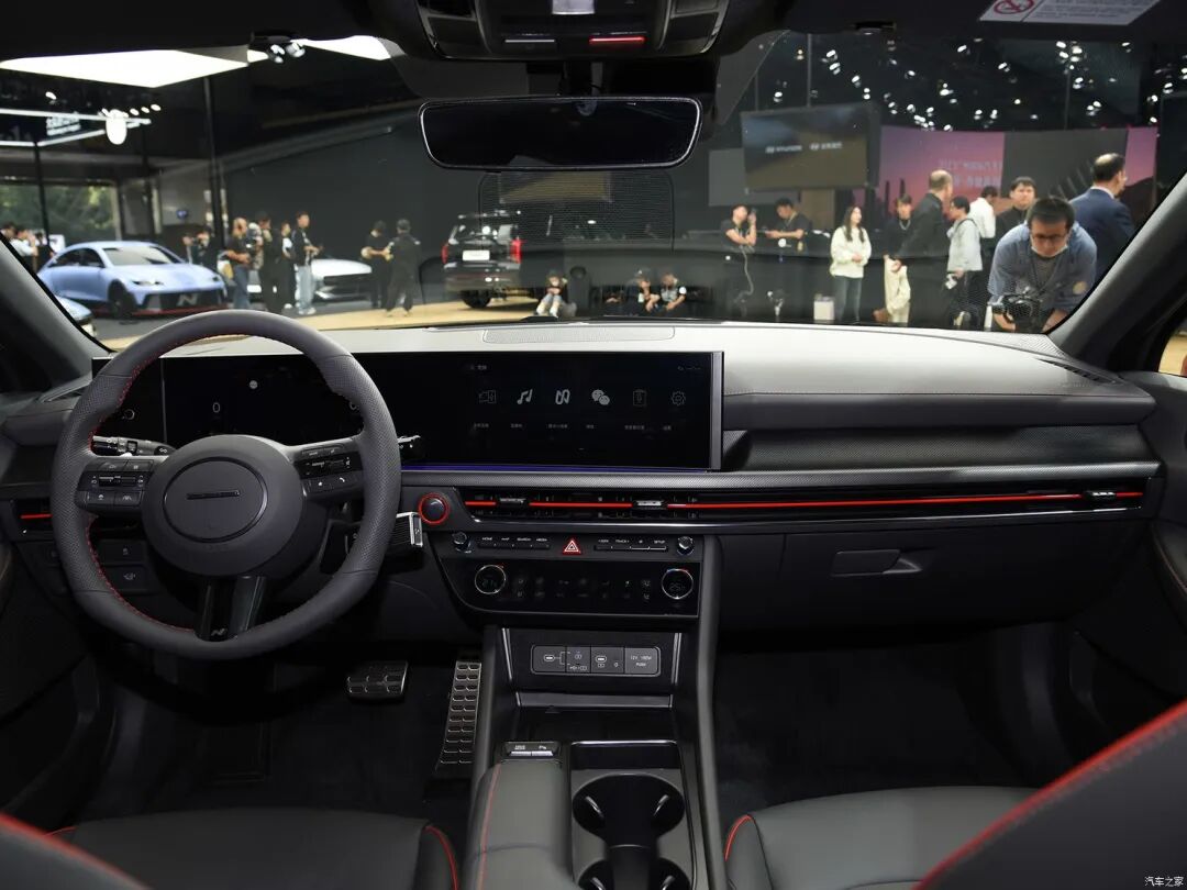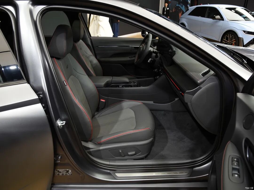 外观方面,在车展上我们拍摄到了索纳塔N Line车型,而普通版目前也完成工信部申报。新车采用全新设计语言,整体更具年轻、科技。具体来看,该车采用了分体式大灯组,同时日行灯选用贯穿式造型,搭配下方大尺寸梯形进气口,更具设计感。同时,普通版和N Line两种版本,主要后者在外观上针对细节进行黑化处理,让其看上去更具运动气息。
