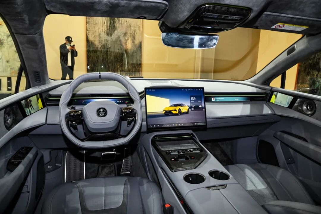 进入车内,如今“豪华”也成为了路特斯的标签之一。大量的碳纤维元素点缀,搭配Alcantara、Nappa皮革以及超纤等材质覆盖,质感与氛围十分到位。此外,还搭配了英国音响品牌KEF打造的音响系统。