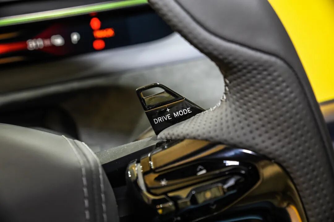 独特的方向盘造型无论是颜值还是握感都很在线,“换挡拨片”如今被赋予新的功能,左侧为能量回收强度设置,右侧则用于切换驾驶模式。