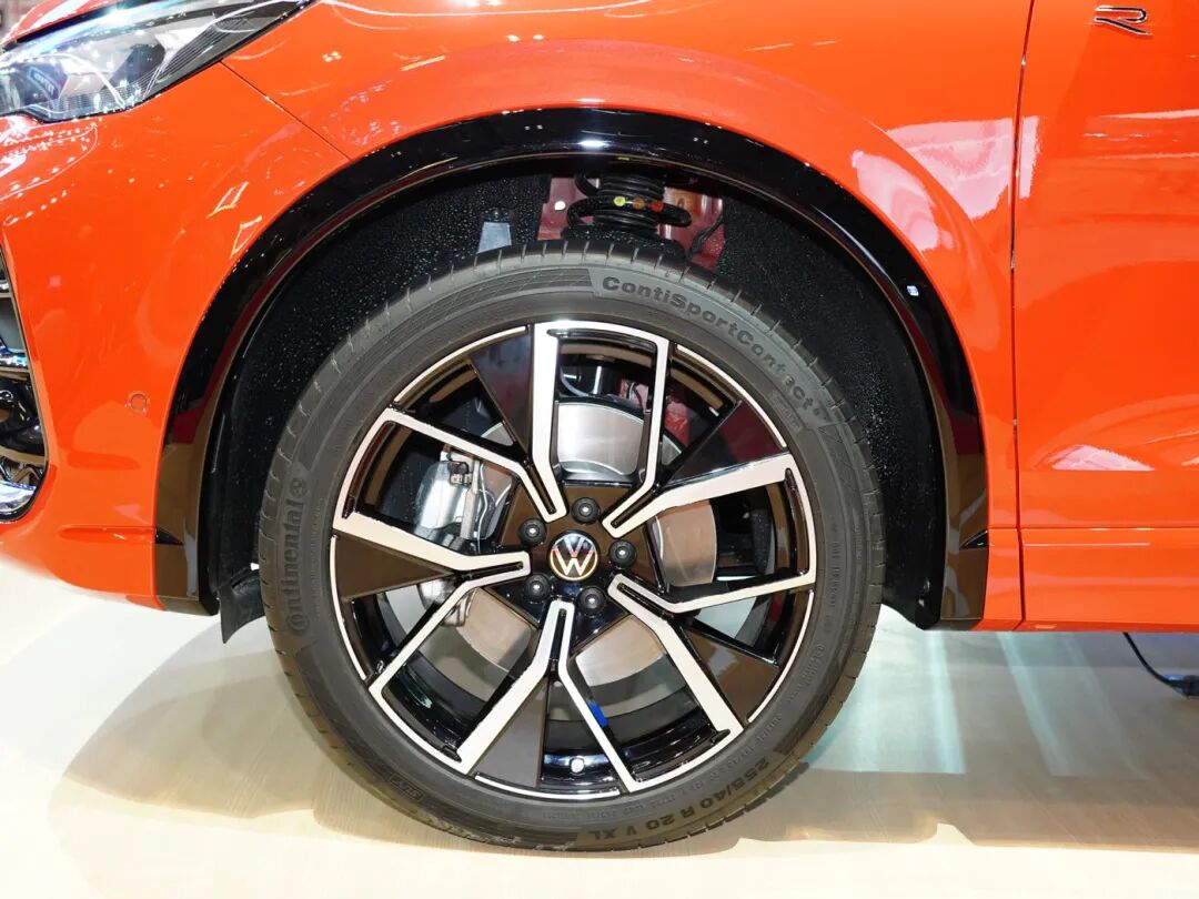 实拍车型采用了20英寸双色多辐式轮圈,造型干练可视为整车的加分项,匹配的是255/40 R20的马牌CSC5轮胎,注重抓地力、稳定性及支撑力的表现,算是一款主打运动的轮胎。