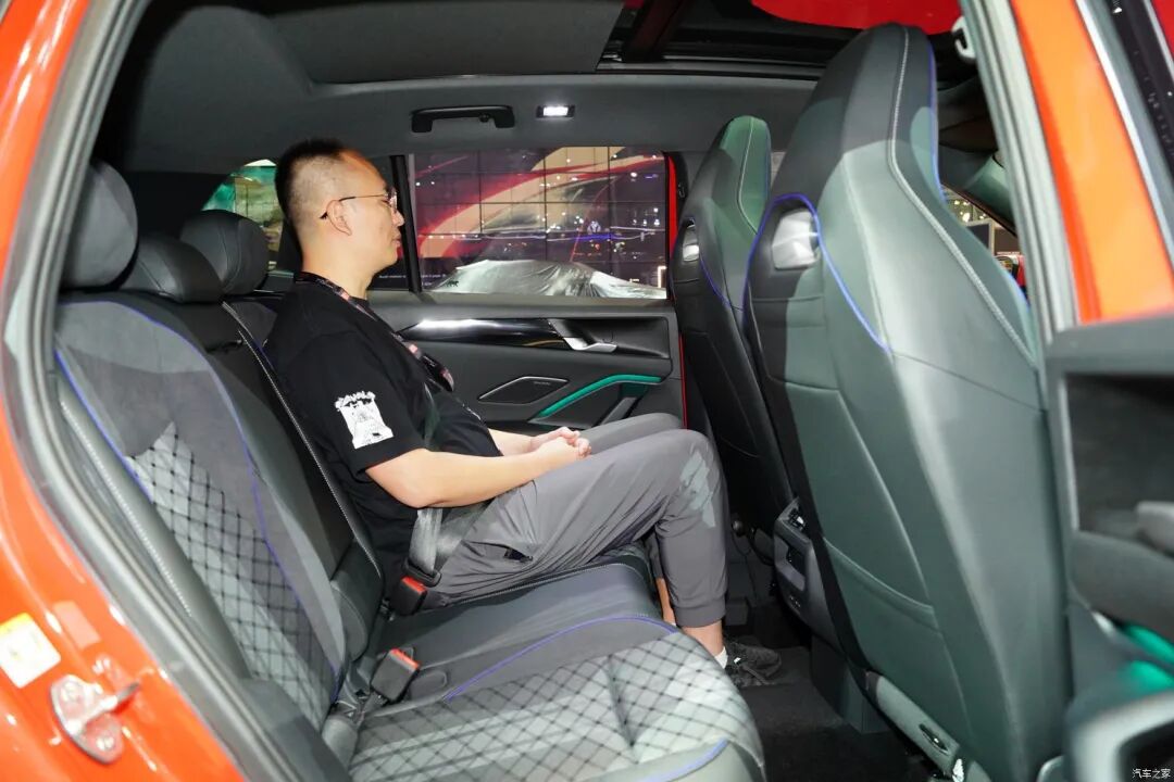 乘坐空间部分,身高183cm的体验者,前排座椅最低时,头部有三指空间,而相同体验者来到后排,腿部空间一拳,头部四指,未来国产版加长后,势必后排腿部空间会更大。