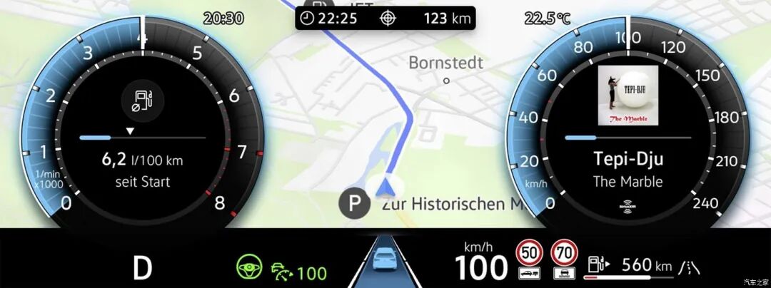 Tiguan液晶仪表的尺寸为10.25英寸,可显示车辆的基本行驶信息外,还包含有导航、多媒体、限速提醒等,符合当下用户的用车需求。