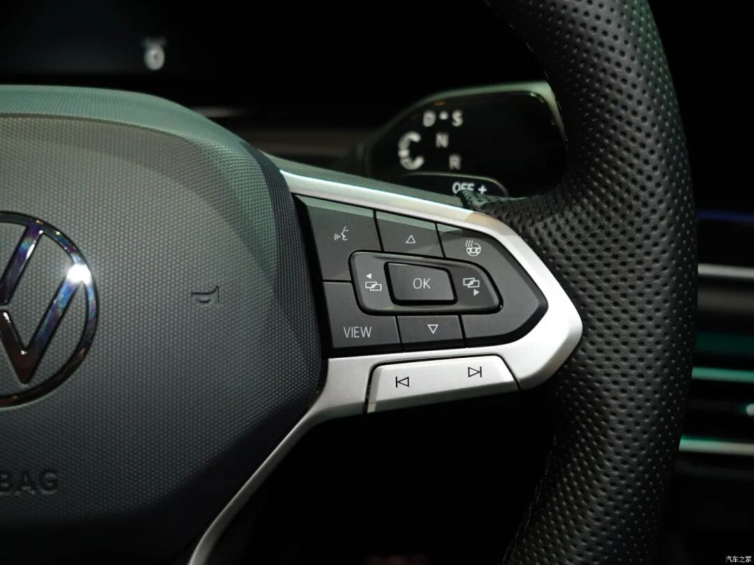 平底三辐式方向盘造型没有太多改动,粗壮且用料扎实,细腻的手感也是有口皆碑。在其右后方,原本雨刷控制杆的位置被怀挡挡杆所替代,提升车内简约氛围的同时,还可释放更多的储物空间。
