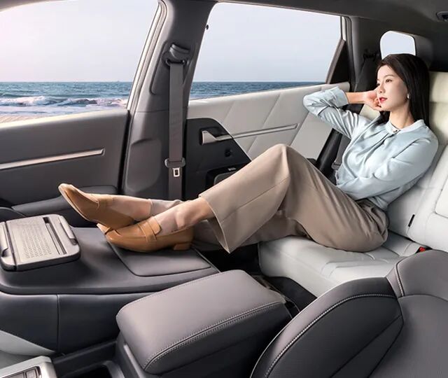 后排强调舒适氛围,后排座椅加长了坐垫,提高了腿部支撑性,长途乘坐更舒适。座椅造型似沙发,横向一体式头枕以及座椅的横向线条延展了视觉宽度,与门板相呼应的配色也更显敞亮。此外,后排还可实现“悬浮座椅”,将副驾驶座椅靠背折叠,后排乘客腿部可以搭在前排靠背上,再加上可调节的后排座椅靠背和大头枕,便可享受解放双腿的惬意乘坐体验。
