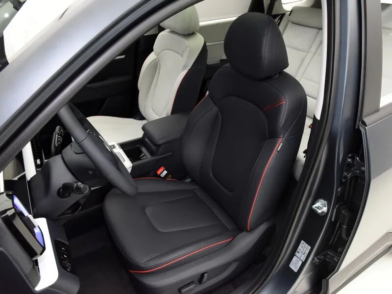 主驾驶座椅注重营造运动风格,比如实拍车型采用深色座椅并加入了红色元素点缀;副驾驶采用浅色座椅搭配红色装饰以营造时尚感。