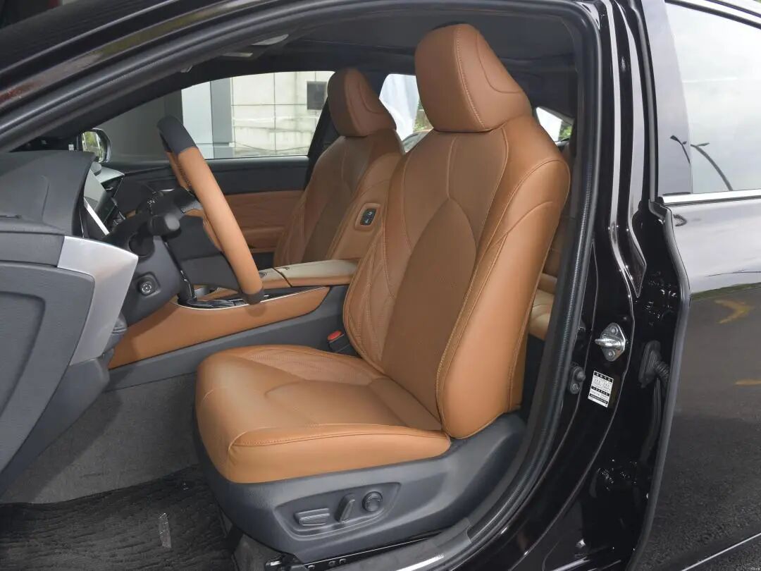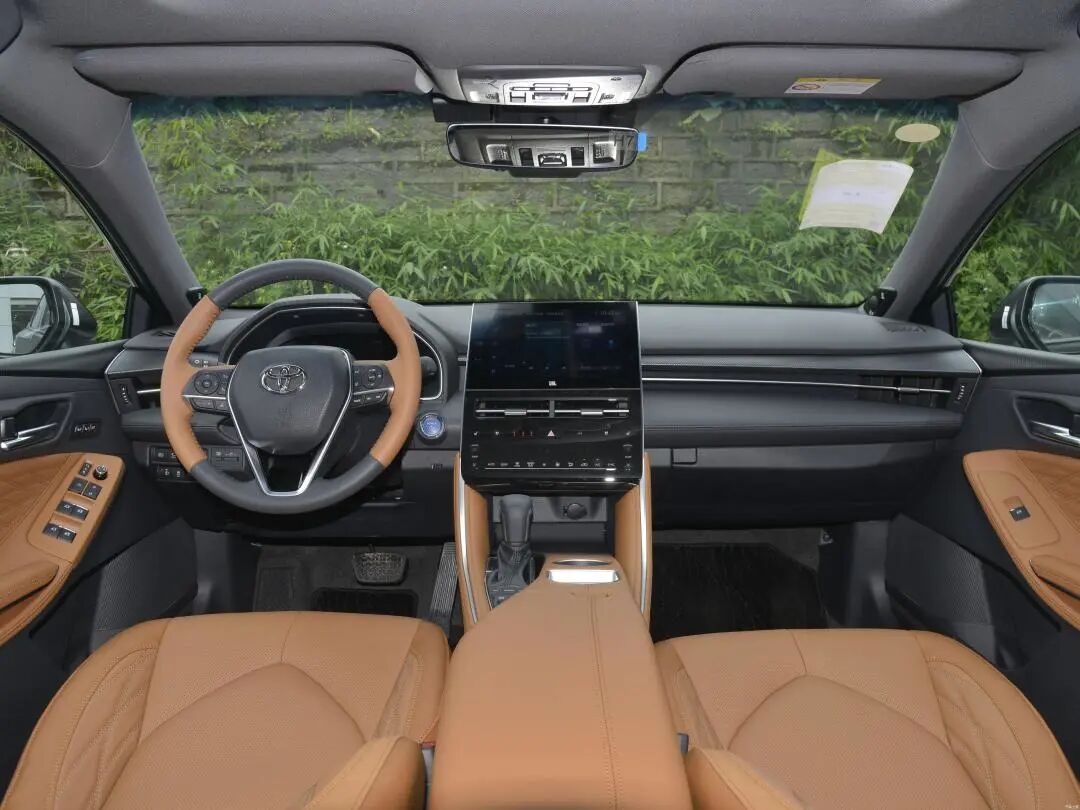进入车内,亚洲龙根据配置不同,提供了四款内饰配色。实拍车辆采用干邑棕色搭配菱形纹理,门板与座椅均采用绗缝工艺,非常凸显豪华氛围。
