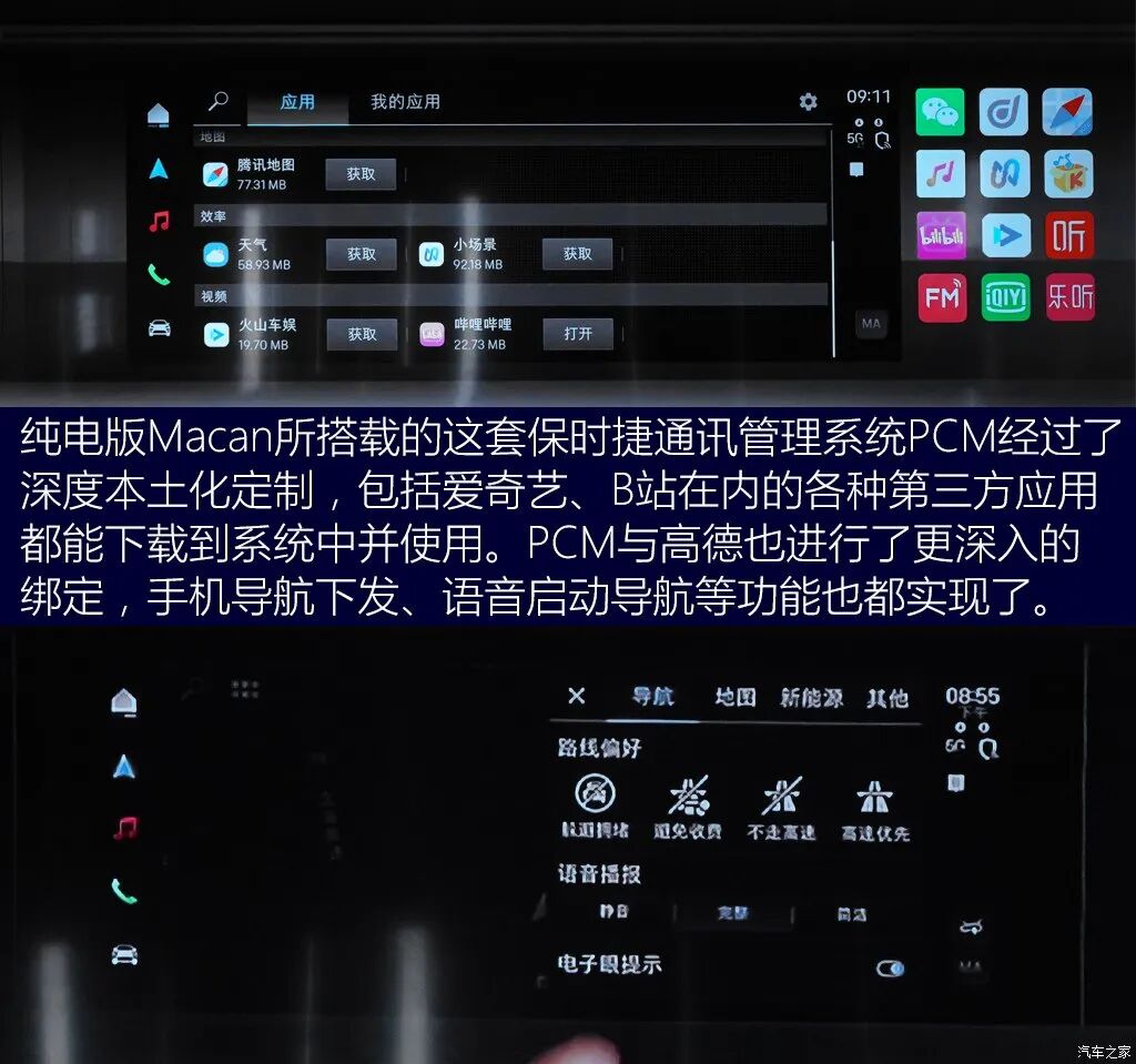 座舱的造型设计既有保时捷品牌的家族化特征,同时也跟随潮流,为本土用户匹配了前沿的智能网联功能。整个中控台像个“茧”一样环抱在乘客周围。车联系统的表现同样突出,4块屏幕为车内乘客提供丰富的网络和娱乐交互服务,保时捷智慧互联系统PCM还经过了本土化改进,可以下载包括B站、爱奇艺在内的第三方应用。用户使用PCM系统(智慧互联服务包)的前10年免服务费,前4年还提供免费的通用流量供使用。