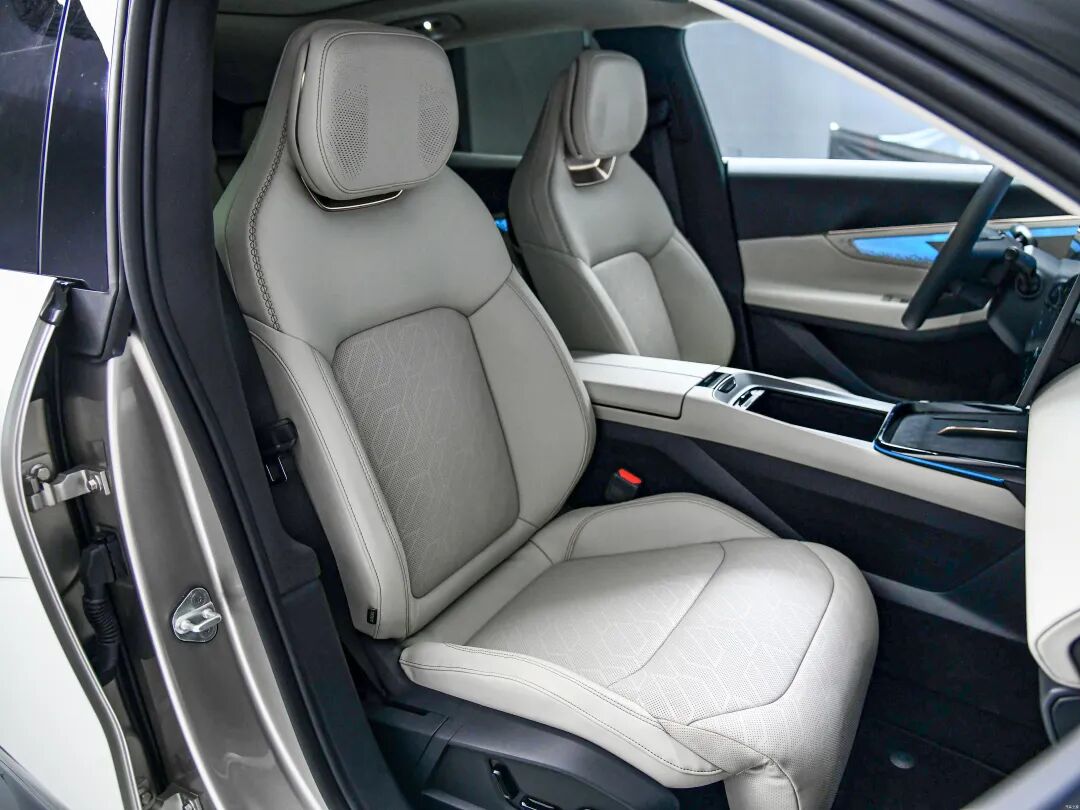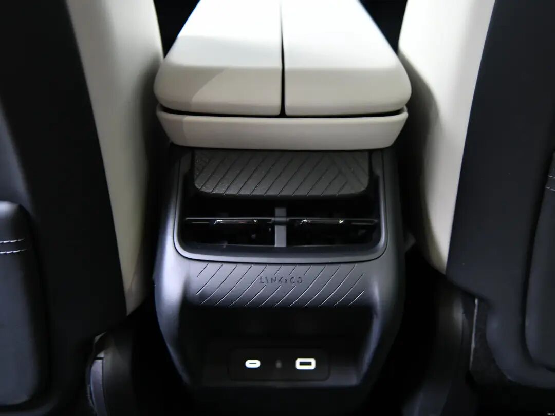 领克08为5座布局,前排采用一体式座椅,头枕处还集成了扬声器。座椅样式运动,但舒适性一流,副驾座椅带有电动腿托,很照顾副驾乘客。后排座椅舒适性不减,提供有空调出风口以及USB、Type- C接口,而且中间地台的凸起也在可接受范围,不会过于影响中间乘客的乘坐体验。