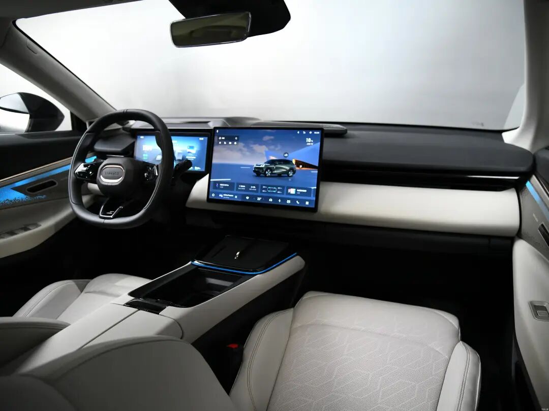 来到领克08的车内,没有了此前领克擅长的运动风格座舱,如此简约的设计风格,相信其合作伙伴沃尔沃看了都要直呼内行,然而,在细节处,却充满了繁复,很值得推敲。想要高级感它也能给到,处处皆软的用料便是作证。中控台几乎取消了物理按键,取而代之的是一块悬浮式中控大屏,很有造车新势力产品的味道,此外,按照惯性思维来看,大屏的出现能从侧面说明它的智能化程度如何。
