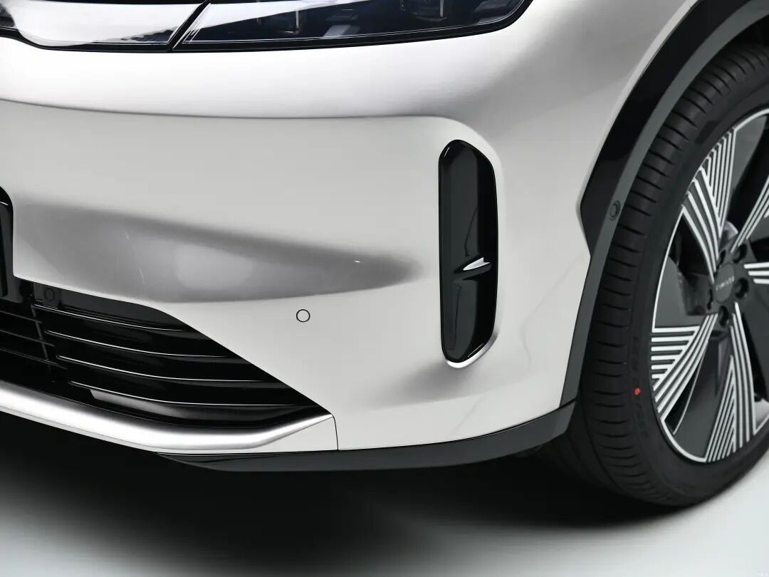 下方六边形进气口造型犀利,内部为黑色横向饰条,并采用了折线处理,带来了三段式的视觉效果。中间位置,为全速自适应巡航系统的硬件雷达。而为了提升车辆的空气动力学性能,在下包围两侧提供了大尺寸的竖状扰流槽,中间还采用了风刃的设计。