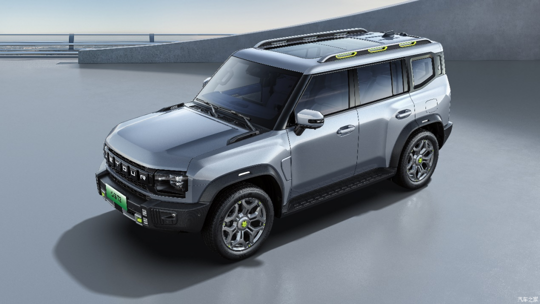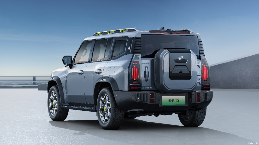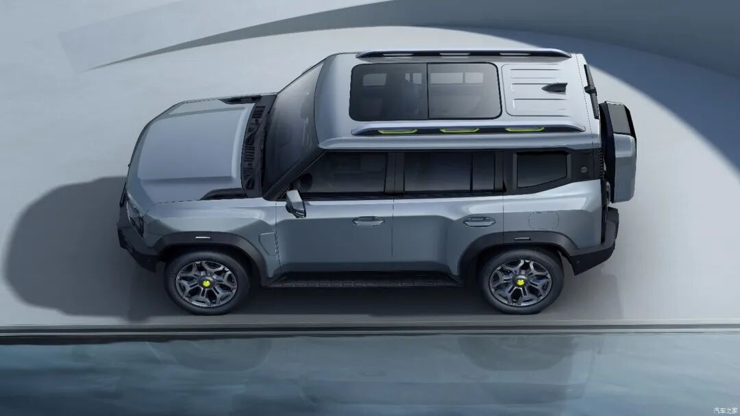 车身侧面,车窗边框见棱见角,轮眉的造型向外凸起,展现出硬派风格,其还采用了悬浮式车顶的设计。尾部方面是经典的“小书包”装配,同时竖置的尾灯在黑框的包裹下,展现出越野气质。