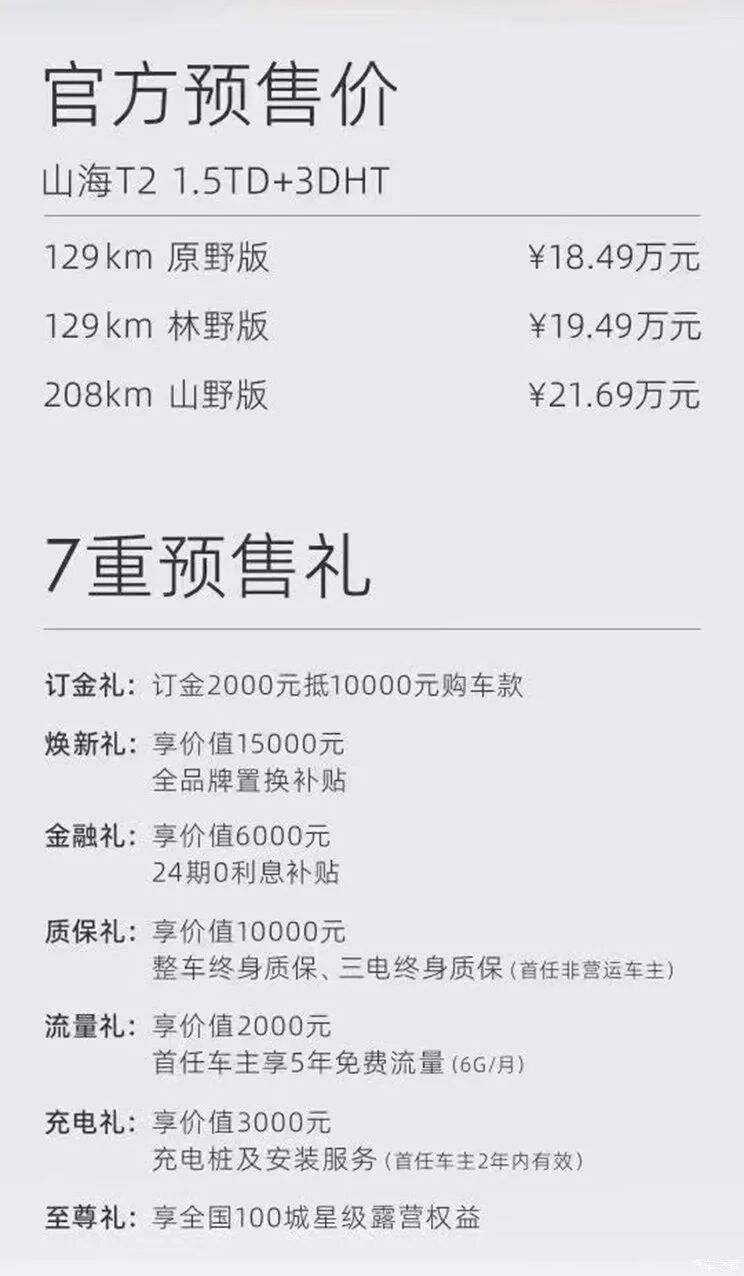 近日,我们从捷途品牌官方了解到,旗下紧凑型SUV——捷途山海T2正式开启预售,共推出3款配置车型,预售价区间为18.49-21.69万元。同时,还推出7重预售礼,具体如图。值得一提的是,该车将在4月份北京车展开幕前后完成上市。